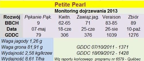 Monitoring faz rozwojowych odmiany Petite Pearl (oprac.ZB)