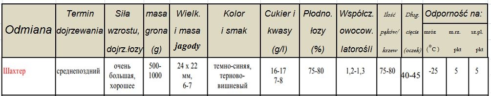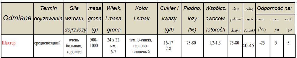 Szachtior - parametry