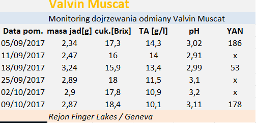 Valvin Muscat - monitoring dojrzewania 2017 rok