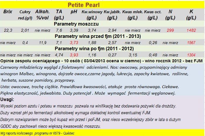 Wino Petite Pearl 2012 - parametry enologiczne i opinia